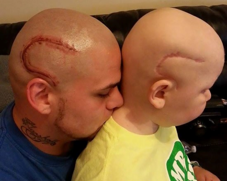 On the father’s head, there’s a scar too. But this one is different. This one isn’t the result of surgery or a traumatic event. Instead, it is a carefully crafted tattoo, a replica of his son’s scar, etched into his skin as a token of love and unwavering support. The father didn’t have to make this choice — but he did it, and in doing so, he created a powerful symbol of unity. His son’s fight became his own, not through surgery, but through a simple yet extraordinary act of solidarity. This tattoo is his way of showing that no matter what happens, they will always be a team, standing side by side, sharing their strength in ways that words cannot capture.