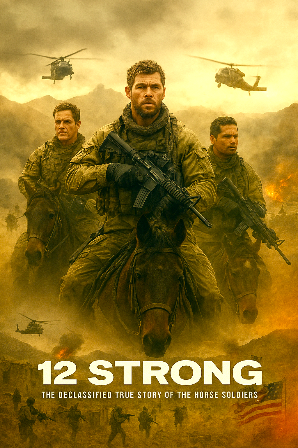 12 Strong is a war action-drama based on the true story of the first U.S. Special Forces team deployed to Afghanistan after 9/11. The film follows Captain Mitch Nelson (Chris Hemsworth) and his 12-man team as they partner with an Afghan warlord to take down Taliban forces. Facing harsh terrain, cultural differences, and overwhelming odds, the team must rely on strategy, courage, and brotherhood to complete their mission.