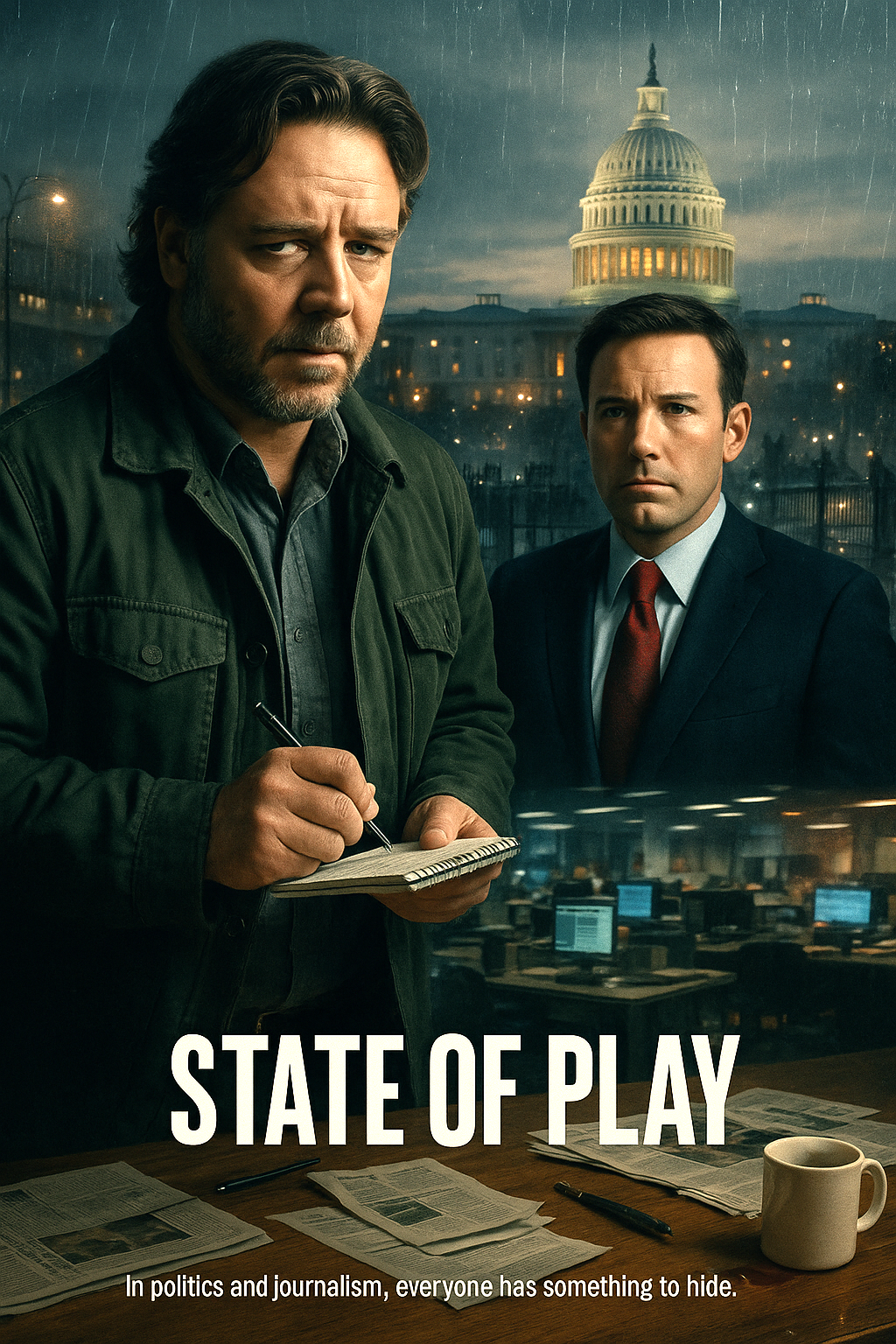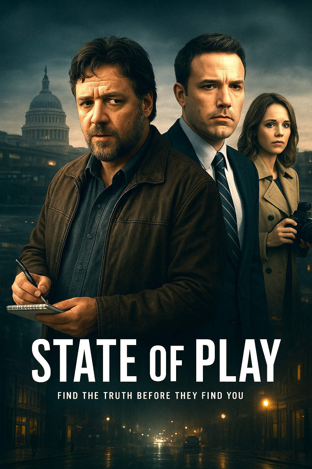 State of Play (2009) is a gripping political thriller that delves into corruption, power, and morality in modern journalism and politics. The story follows Cal McAffrey (Russell Crowe), a seasoned investigative journalist, and Congressman Stephen Collins (Ben Affleck), whose aide is mysteriously murdered. As McAffrey uncovers a web of corporate greed, political maneuvering, and personal betrayal, the stakes escalate, forcing questions about loyalty, truth, and justice.