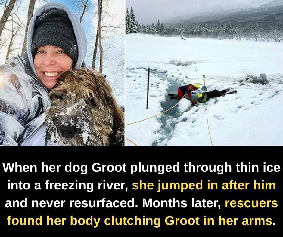 On December 23, 2023, 45-year-old Amanda Richmond Rogers set out for a winter walk with her beloved dog, Groot, by her side, enjoying the serenity of Alaska’s cold beauty. But when the unthinkable happened and Groot suddenly broke through the fragile ice of the Kasilof River, plunging into the freezing water, Amanda didn’t hesitate for a second. Without thinking of her own safety, she leaped into the icy depths to save her furry friend.