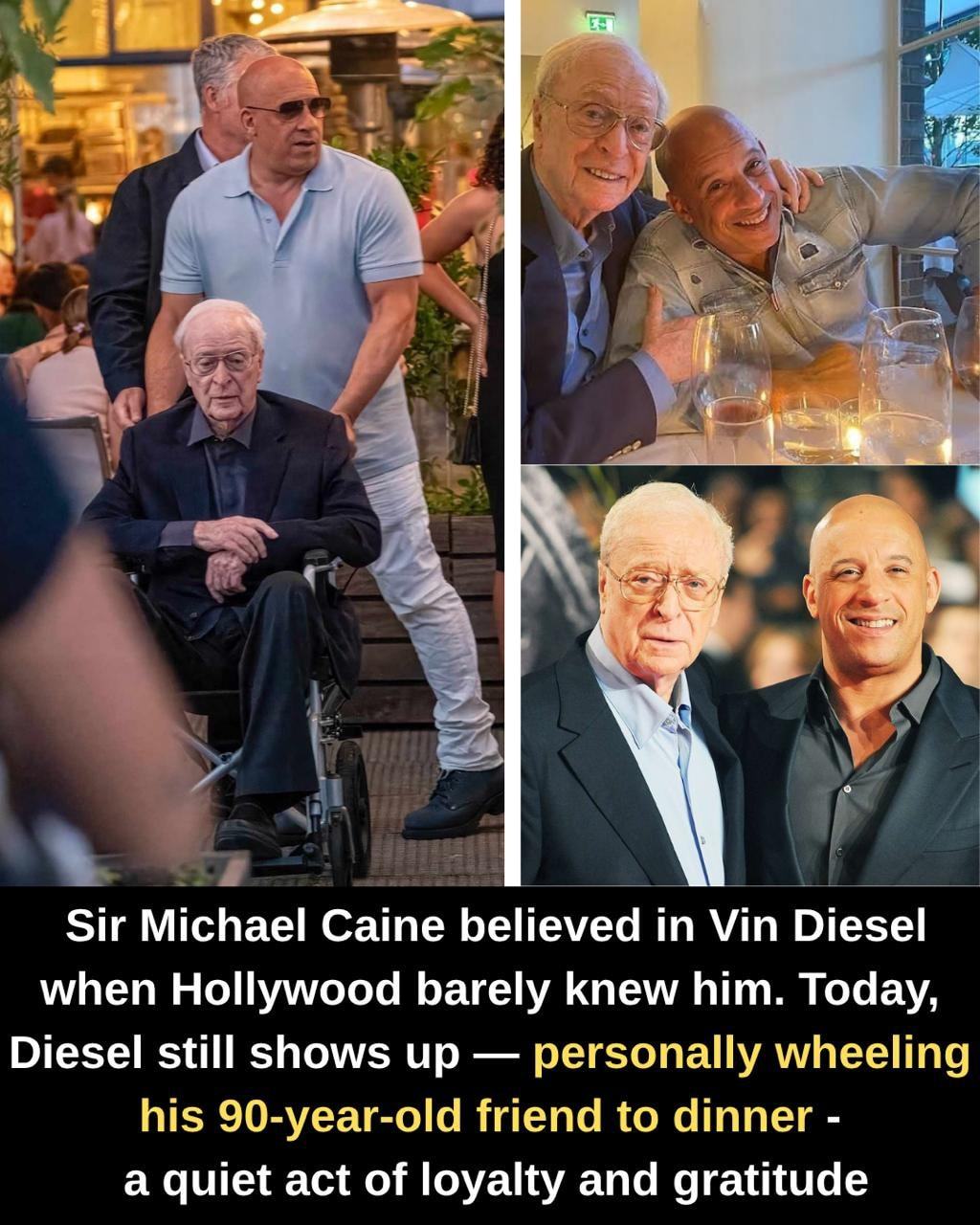 Recently, Vin Diesel was spotted gently wheeling Sir Michael Caine, now 92, to dinner, a quiet yet powerful gesture that beautifully reflected the depth of their friendship. In a world where fame often fades and success is fleeting, this moment was a timeless reminder that true success isnโt about accolades or headlines โ itโs about the loyalty and gratitude we show to those who helped us along the way. ๐๐