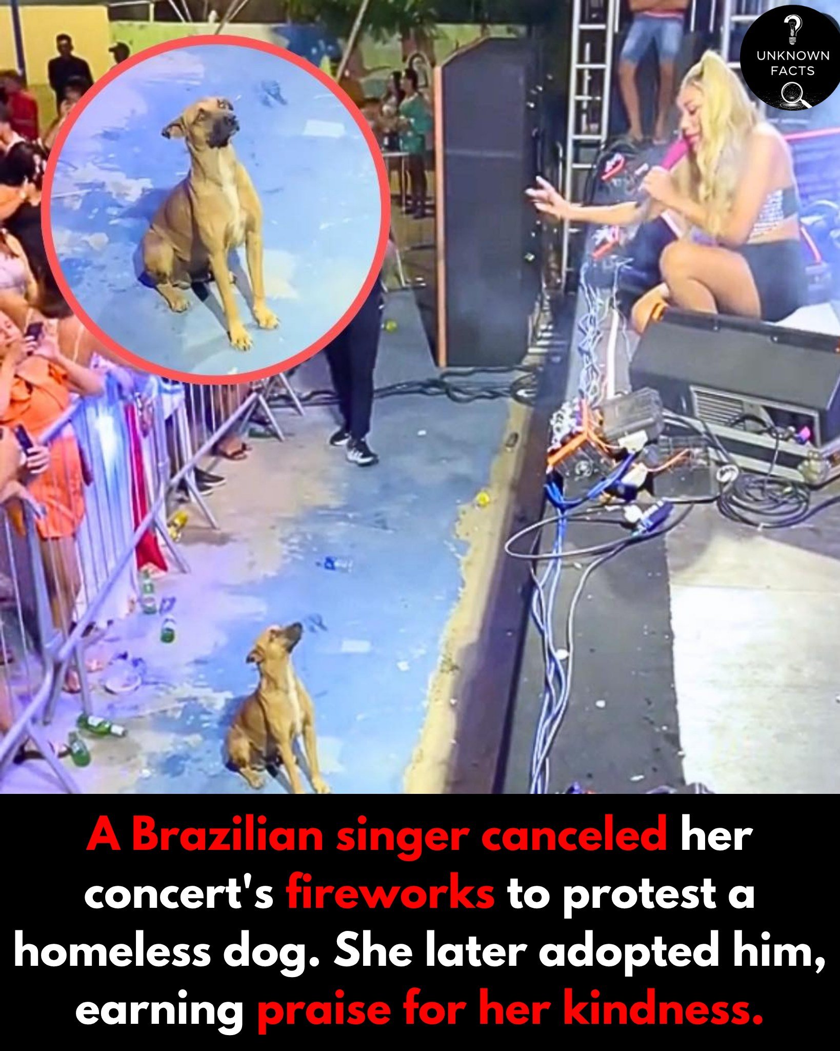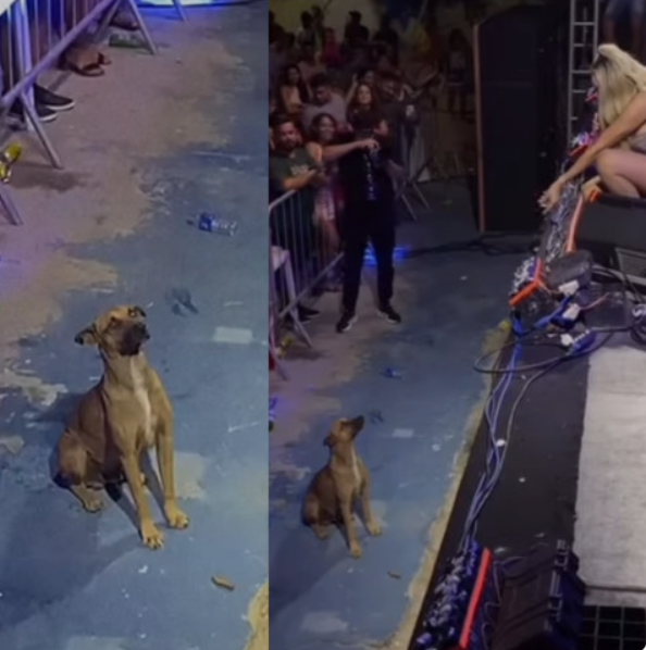 During a live concert in Brazil, singer Taty Girl captured the hearts of fans not just with her music, but with an incredible act of compassion. While performing, she noticed a homeless dog quietly watching the show. The dog, later named Caramelo, seemed to enjoy the concert, but when the time came for fireworks—something many dogs find distressing—Taty made a powerful decision.