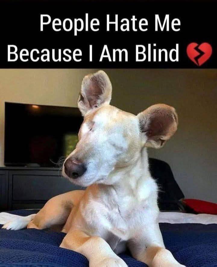 I don’t need pity. I don’t need someone to feel sorry for me. What I need is to be understood. What I need is love. Not because I am broken, but because I am worthy — worthy of being seen for who I am, not for what I cannot do. I don’t need to be fixed; I am already whole. I have strength in my heart, and I have hope that one day, someone will stop and see me — truly see me — beyond the blindness, beyond the limitations. And they’ll see the love that radiates from my soul, the loyalty I have to give, the joy I bring with each moment. 🕊️💛So, the next time you see me — look past my blindness, look past the difference you think you see, and see the love I have to offer. See the way my tail wags when I feel your kindness, see how my heart beats with joy when you show me affection. Because even though I can’t see the world through your eyes, I see it with my heart — and in that world, I am not alone. I am full of love, and that love is what makes me whole.