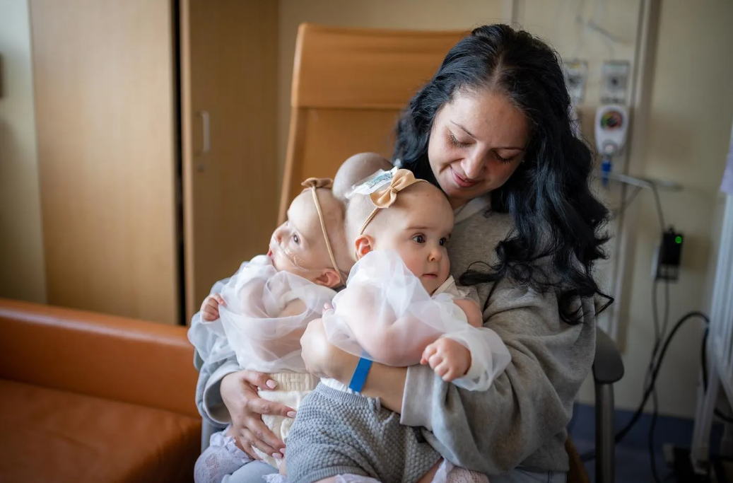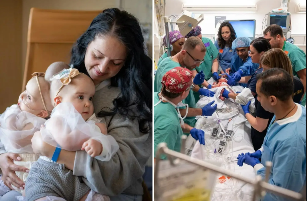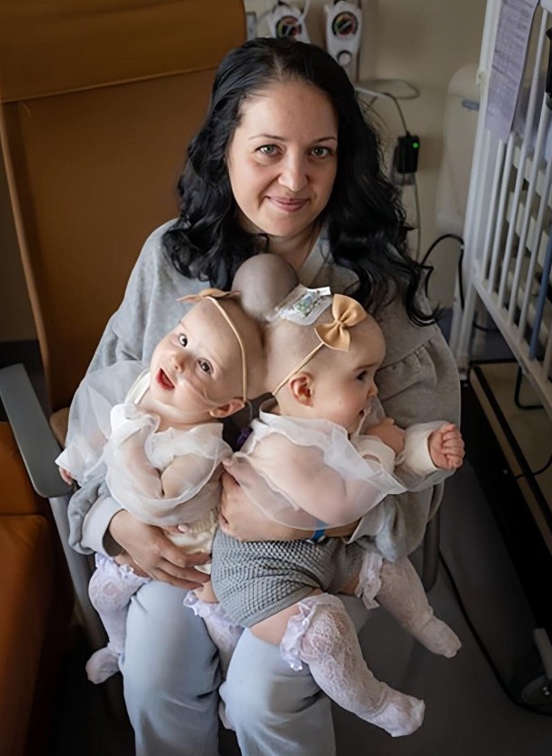 For Liliya Miroshnik, their mother, the thought of her daughters living separate lives had once seemed almost impossible. π’π βIt felt like a dream we might never reach,β she said, tears streaming down her face. βBut with God, the doctors, and the incredible nurses at UC Davis, we made it through.β πβ¨ Abigail and Micaela Bachinskiy, born craniopagus twins, had shared their entire tiny lives fused at the head β a condition so rare that only a handful of surgeries are attempted worldwide each year. π§ π« The complexity was staggering: every heartbeat, every move, every second of their delicate 9-month lives depended on the skill and precision of an extraordinary medical team.