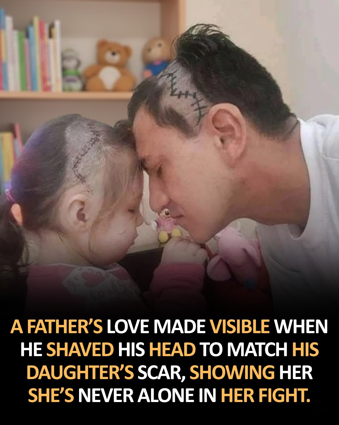 In a quiet room, away from cameras and onlookers, he made a bold, silent choice. With a razor in hand, he shaved his head, deliberately marking the spot where her scar would form after surgery. Each stroke of the razor was a promise, a vow of empathy, and an unspoken declaration of solidarity. 🕊️💪 When the time came for the surgery, she looked up and saw her reflection in him. The tiny incision she would bear was mirrored by her father, a visible symbol that they were fighting together. Pain, fear, and courage were shared equally between them. In that moment, she wasn’t just a patient — she was a warrior with a partner who understood every heartbeat of her struggle. 💞