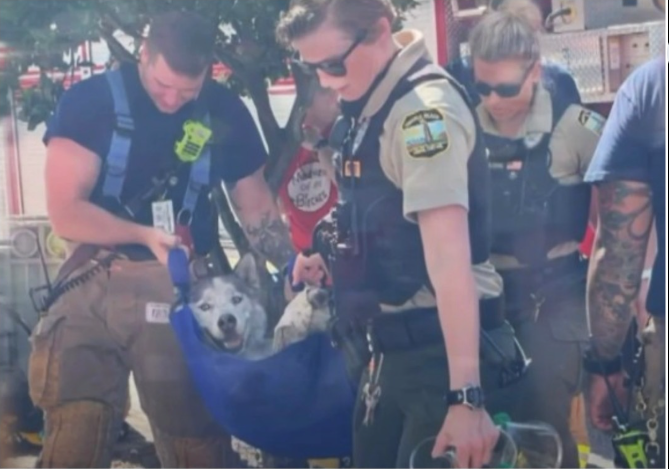 Outside, a team of animal control officers prepared to help. They placed an oxygen mask gently over Igor’s snout, and slowly, miraculously, his chest began to rise. The husky’s dark eyes fluttered open, life returning in a quiet, miraculous moment. ❀️🐢Igor wagged his tail, a silent thank-you to the men who refused to leave him behind, to the hearts that risked everything for a creature who couldn’t speak, only depend. In that moment, heroism was raw, unglamorous, and powerful β€” a reminder that love and courage don’t need words. πŸ•ŠοΈβœ¨