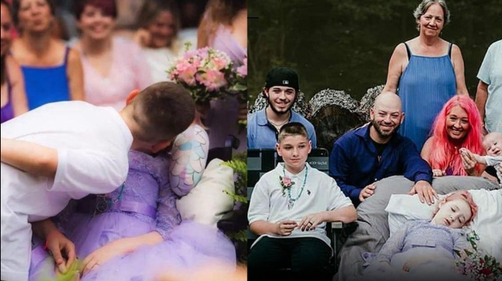 Her family moved quickly, knowing that every second mattered. In her grandmotherโs garden, surrounded by fragrant flowers and the soft warmth of the sun, they created a moment of magic. Emma wore a delicate lavender dress, holding DJโs hand with a grip that radiated both trust and joy. Tears threatened to spill from every eye โ from parents, grandparents, and friends โ but everyone tried to stay strong, knowing that this day was about Emma, her happiness, and her spirit. ๐ธ๐