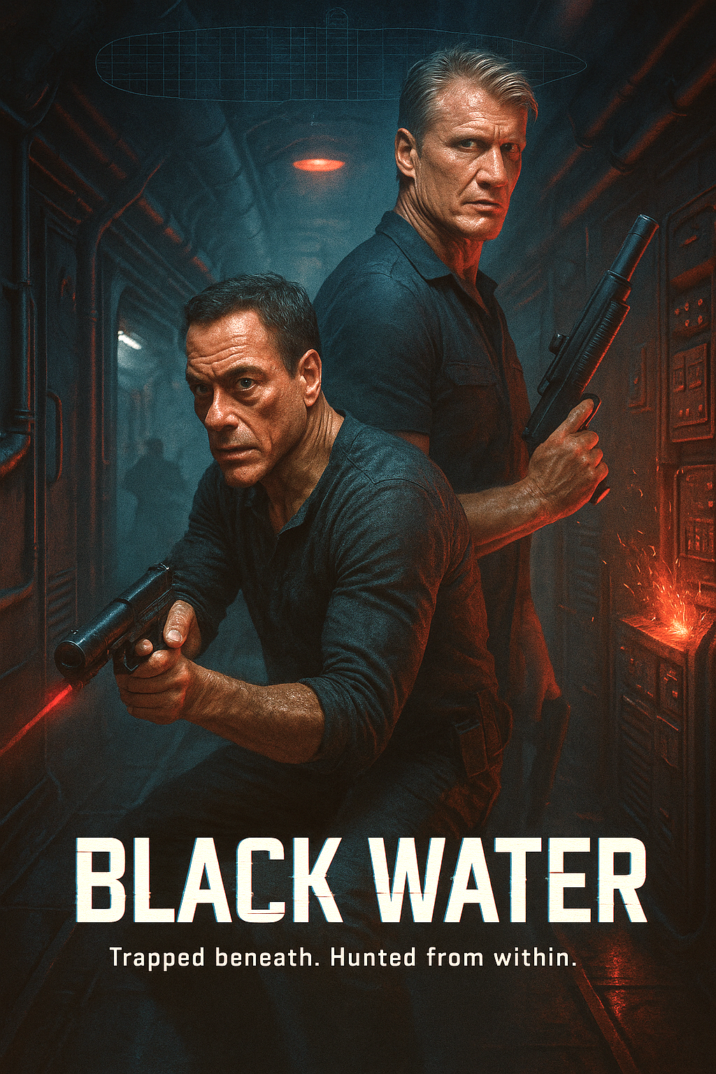 Black Water reunites Jean-Claude Van Damme and Dolph Lundgren in a tense, claustrophobic action thriller set aboard a CIA black site submarine. Van Damme plays Wheeler, a deep-cover operative who wakes up imprisoned and interrogated aboard the underwater facility after a mission goes wrong. With enemies on both sides and no one to trust, he must escape and uncover who set him up — with the reluctant help of another mysterious prisoner (Lundgren).