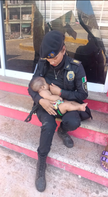 While on rescue duty, she came across a desperate young woman clutching her infant, both trembling, soaked, and starving. The baby, only four months old, cried weakly — the kind of cry that comes not from pain, but from hunger and exhaustion. The mother, her face pale and hollow, had lost everything — her home, her strength, her milk. She looked at Arizbeth not as an officer, but as another woman, silently pleading for help. 😢