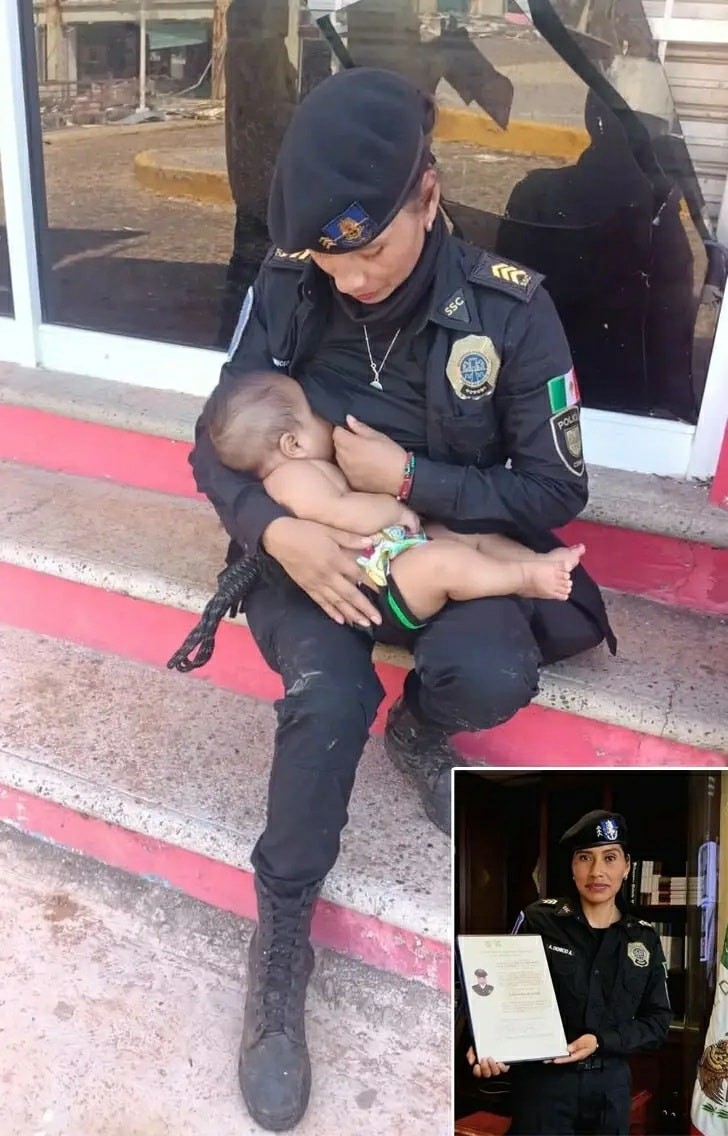 A bystander captured the moment — Arizbeth, in her uniform, holding the baby close, her eyes soft and calm amid the devastation. That image spread like wildfire across the internet, a beacon of hope in a sea of despair. People around the world saw in her not just an officer, but the living proof that compassion survives even in catastrophe. 💖🌟