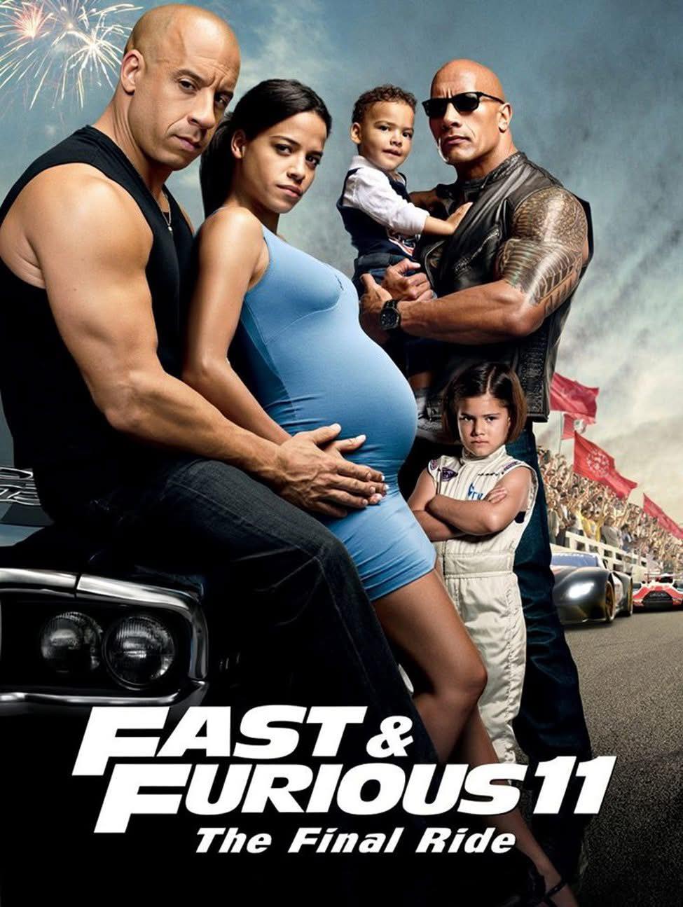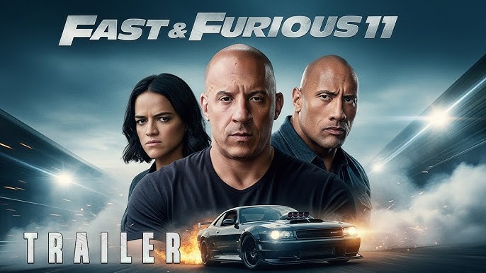 Prepare for the grand finale! Fast & Furious 11: The Final Ride (2025) brings Vin Diesel, Michelle Rodriguez, and Dwayne Johnson together, as shown in this moving poster. The family stands by a classic car with fireworks, hinting at an epic close.
