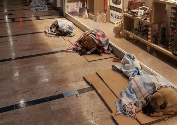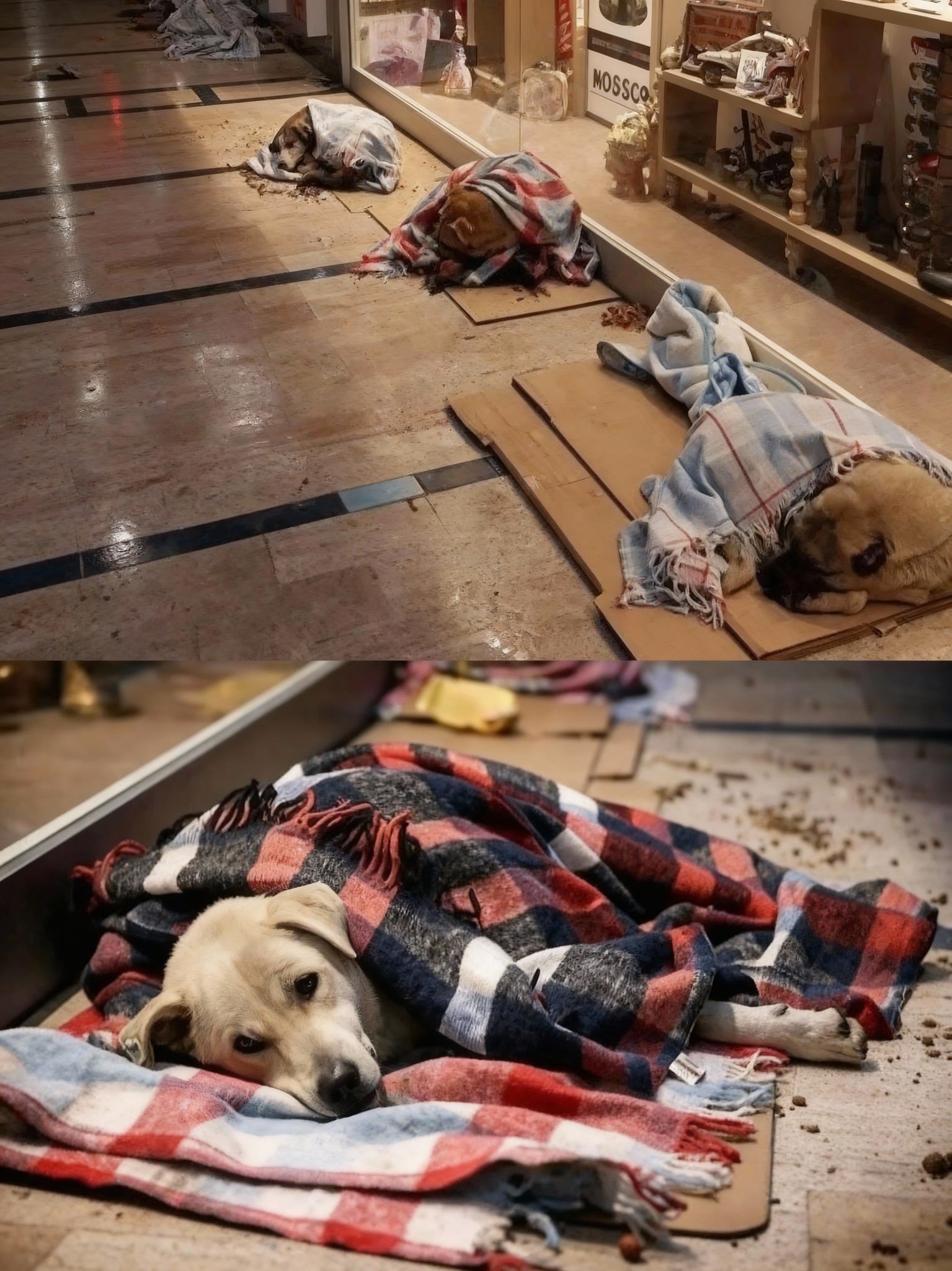 Inside Atrium Mall, a group of volunteers witnessed this suffering firsthand. The sight of trembling pups, noses red from the cold, and eyes full of fear moved them deeply. They knew they had to act. With care and determination, they laid out soft blankets, placed bowls of food and fresh water, and opened the mall doors to any dog seeking refuge. For one magical night, the animals β long accustomed to hunger and isolation β experienced something almost unimaginable: safety, warmth, and human compassion. π§£π₯°