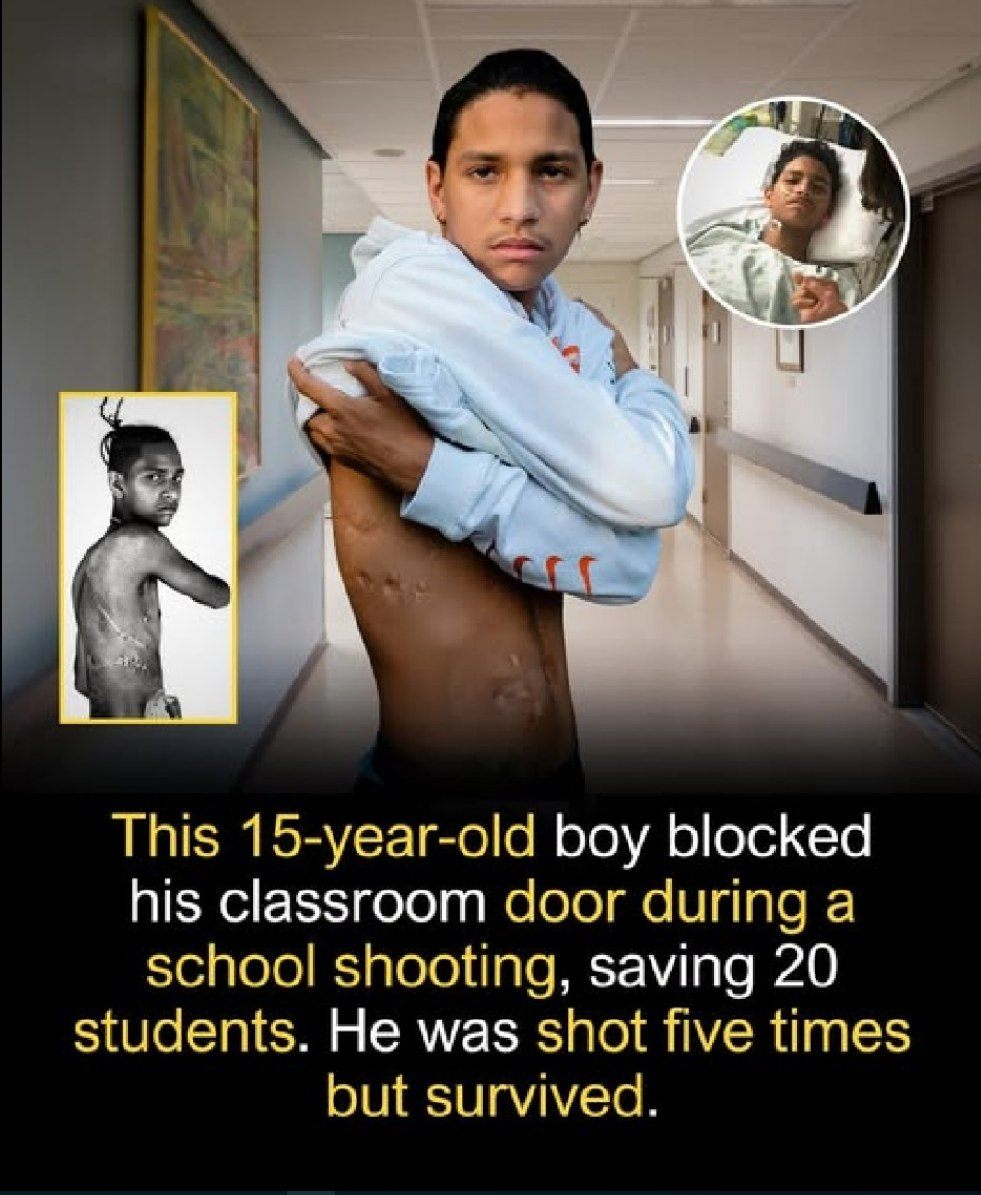 Anthony Borges, only 15 years old, was running through the school that morning β a typical teenager hurrying to his classroom πββοΈπ¨. Behind him, a threat no child should ever face: a gunman with lethal intent. Without hesitation, Anthony slammed the classroom door shut and threw himself against it, transforming into a human shield for his classmates. πͺπͺβ€οΈβπ₯