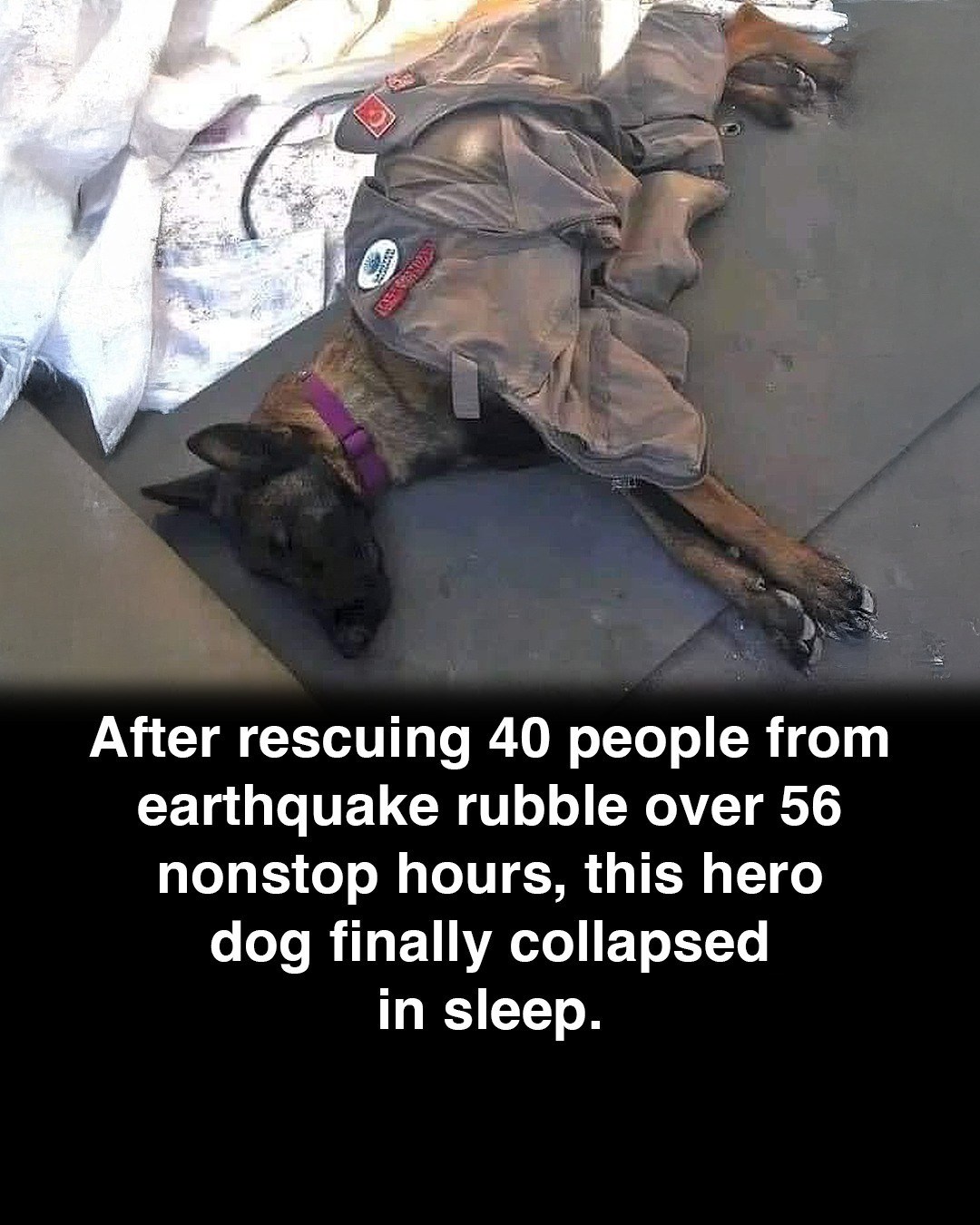 Exhausted yet unwavering, this four-legged hero worked tirelessly alongside human first responders, pulling survivors from debris, one life at a time. In total, 40 people were saved thanks to its relentless dedication ๐ช๏ธโค๏ธ. Each rescued life was a testament not only to skill and training, but to loyalty, instinct, and an indomitable heart ๐.