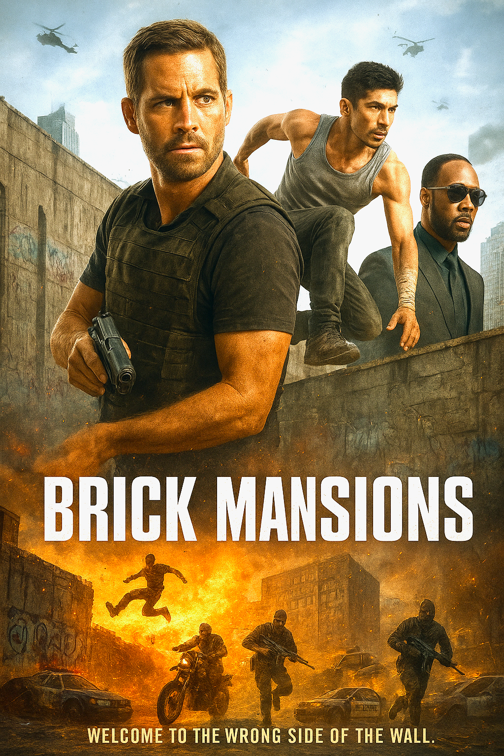 Brick Mansions is a high-energy action thriller set in a dystopian Detroit where crime-ridden neighborhoods have been sealed off by massive walls. Damien Collier (Paul Walker), an undercover cop, teams up with Lino (David Belle) โ a skilled parkour expert โ to stop a ruthless crime lord, Tremaine Alexander (RZA), from unleashing a bomb that could destroy the city.