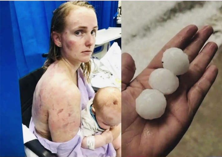 In the middle of this chaos, 23-year-old Fiona Simpson was driving with her 4-month-old baby and her grandmother. The storm struck with merciless fury: glass shattered, metal crumpled, and the world outside seemed to erupt in violent chaos.When the first hailstones smashed through the windows, Fiona didn’t hesitate. She leapt into the back seat, throwing herself over her baby, becoming a living shield. Every shard of glass, every ice strike tore into her body — her back, arms, face — yet not a scratch fell upon her child. Blood poured. Pain roared. But the baby remained safe, cocooned in a mother’s courage.As the windshield finally gave way, Fiona tucked her child into the footwell, arms trembling yet steadfast, shielding her from the relentless hailstorm. Her grandmother suffered serious injuries, yet Fiona’s focus never wavered. She fought, not for herself, but for those she loved. That night, emergency services received over 330 calls as the supercell storm ravaged Queensland. Among the chaos, Fiona’s story emerged — a beacon of bravery. Photographs of her bloodied, battered body went viral, capturing a moment of pure heroism. She was nominated for bravery awards, recognized around the world.Yet when asked, Fiona simply said, “I only did what any mother would do.” In the end, her story reminds us that true heroism is measured not in medals or headlines, but in the quiet, unflinching acts of love — in the willingness to bleed for someone else, to stand as a shield when the storm comes. 🌧️💖