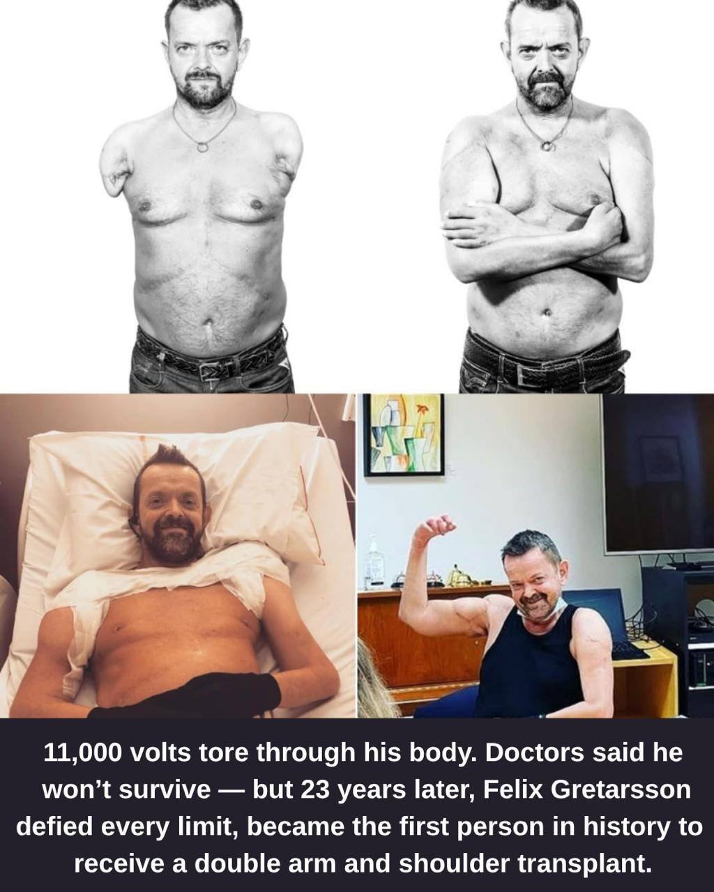 In 1998, a routine day at work turned into a nightmare for Icelandic electrical worker Felix Gretarsson. An 11,000-volt electric shock hurled him to the ground, leaving him gravely injured. He lost both arms, his organs began to fail, and doctors feared he wouldnβt survive the night. π’ποΈ