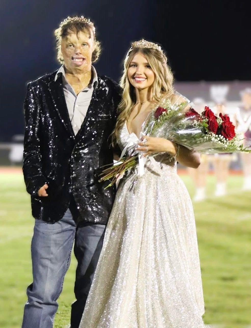Through perseverance and sheer spirit, Dylan transformed his struggle into strength. He learned to embrace life fully, finding joy in sports, school, and friendships. Baseball fields and basketball courts became stages where he celebrated not just athletic skill, but the triumph of the human spirit over adversity. โพ๐๐ Years later, in Cleveland, Texas, Dylanโs courage and resilience were celebrated in a moment that perfectly captured his journey: he was crowned Homecoming King, wearing a sparkling jacket and a radiant smile. ๐ The honor was more than a title โ it was a public recognition of survival, perseverance, and triumph over unimaginable challenges. Standing beside Homecoming Queen Ashlyn Primeaux, Dylanโs presence radiated a message of hope: that even from the darkest flames, beauty, strength, and joy can rise.