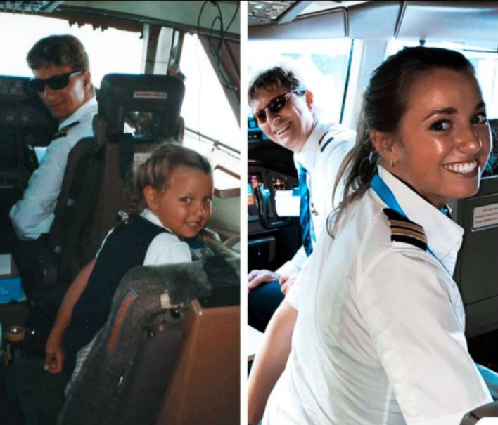 From the moment she was old enough to look up at the sky, she watched her father disappear into the clouds β a hero in uniform, a man whose life was measured in miles and memories carried by the wind. Each time his plane took off, sheβd press her hand to the glass and whisper, βSomeday, Iβll fly too.β π«