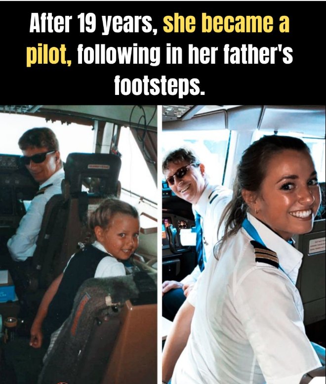 Nineteen years later, that whisper became reality. Standing on the tarmac in her crisp pilotβs uniform, sunlight glinting off her wings, she carried not only her dream but her fatherβs legacy. He had passed away years before β too soon to see this moment β yet every lesson he taught, every word of encouragement, still echoed in her heart. β¨π¨ββοΈβ€οΈ