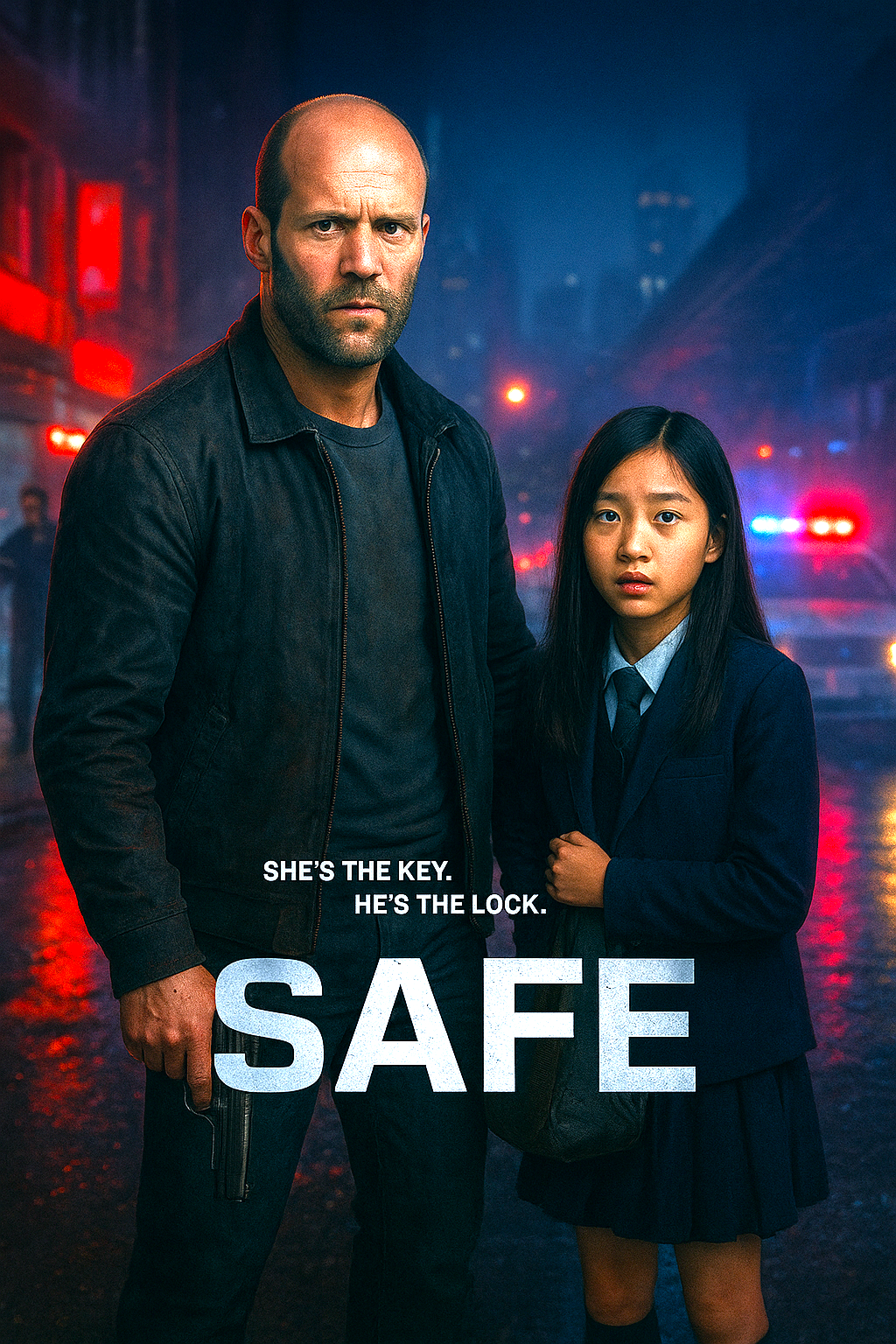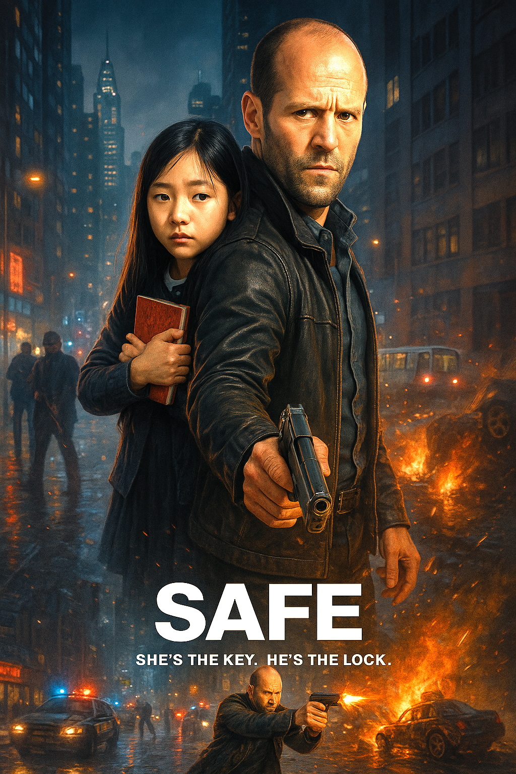 Safe follows Luke Wright (Jason Statham), a former elite agent turned cage fighter, who becomes the unlikely protector of Mei, a young Chinese girl with a valuable numerical code that could unlock vast corruption and criminal power. As ruthless Triads, Russian mobsters, and corrupt cops hunt them, Wright must use his lethal skills and cunning to keep Mei safe. The film combines intense action sequences with a straightforward, high-stakes plot about survival and justice.