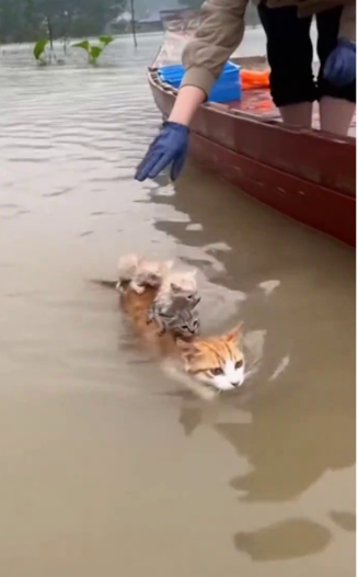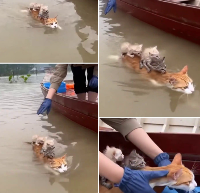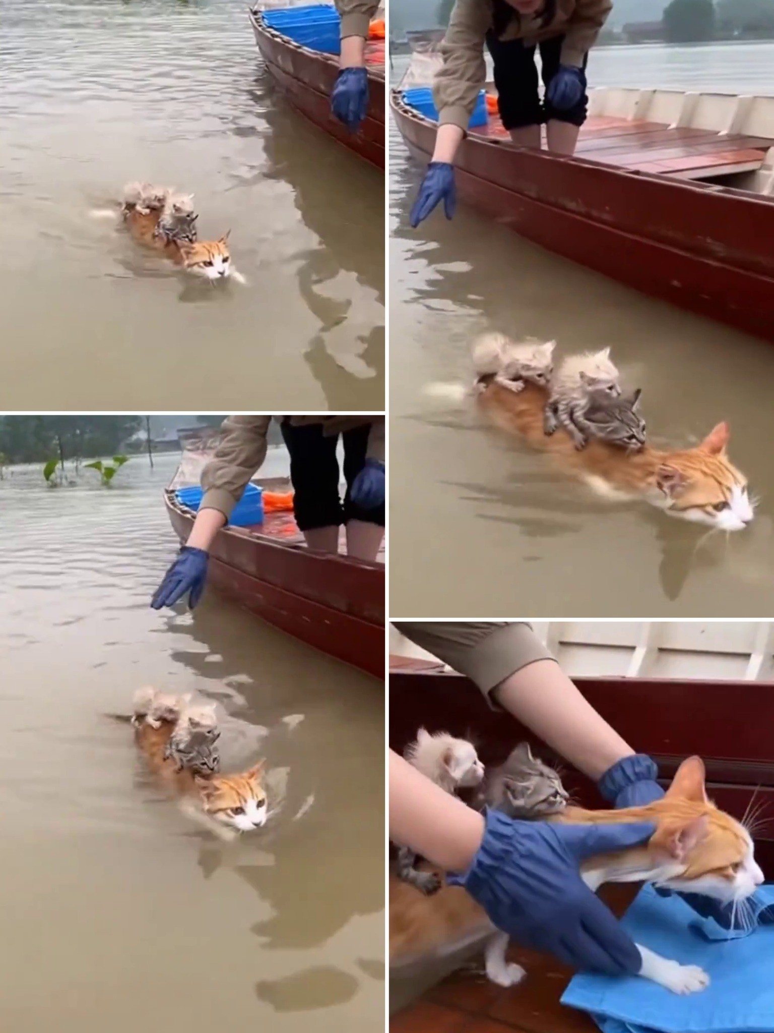 There, fighting against the raging current, was an orange mother cat β soaked, trembling, and exhausted β yet refusing to give up. π±π¦
