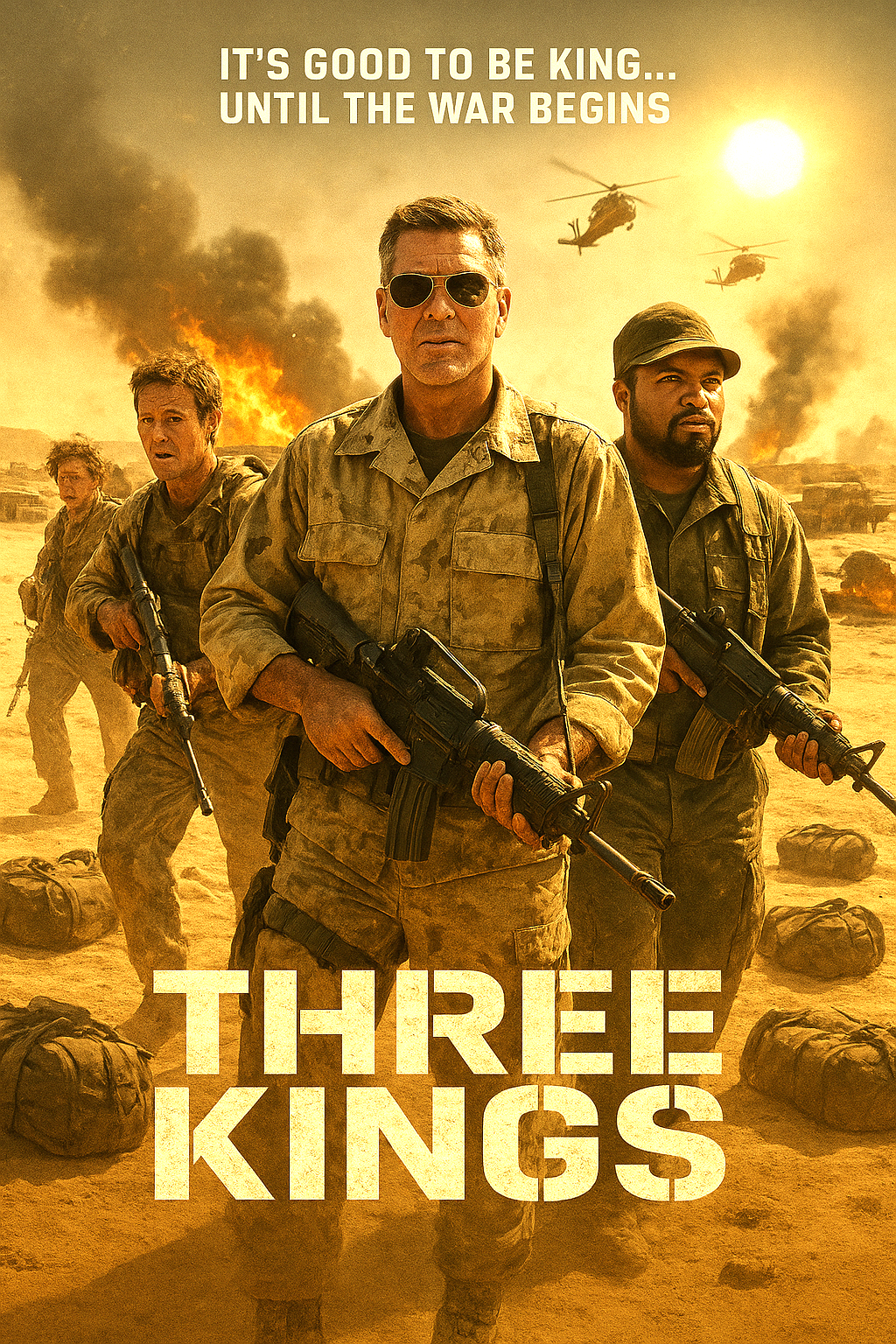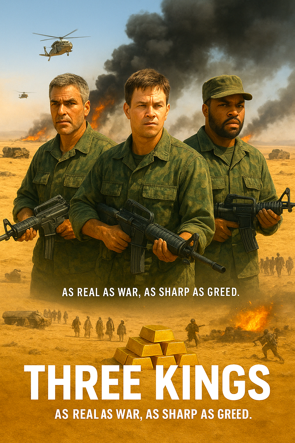 Three Kings is a bold, stylish, and thought-provoking war film that challenges conventions while delivering gripping action and strong performances. Itโs equal parts heist, moral drama, and political satire โ a hidden gem of late-โ90s cinema.