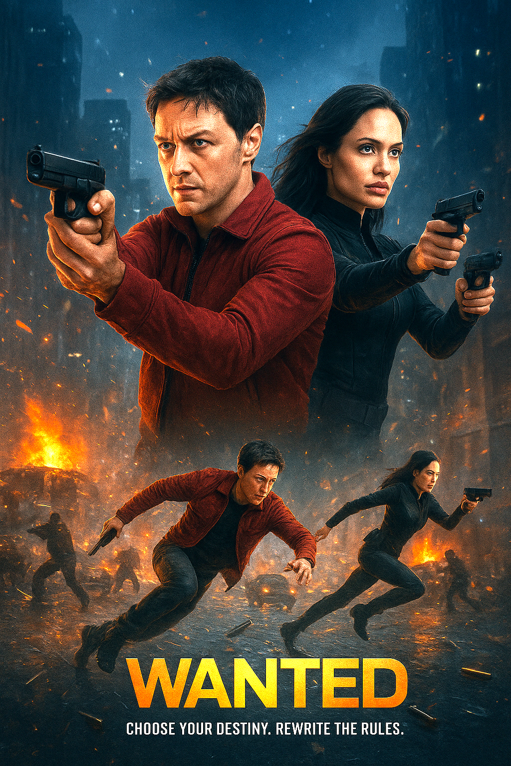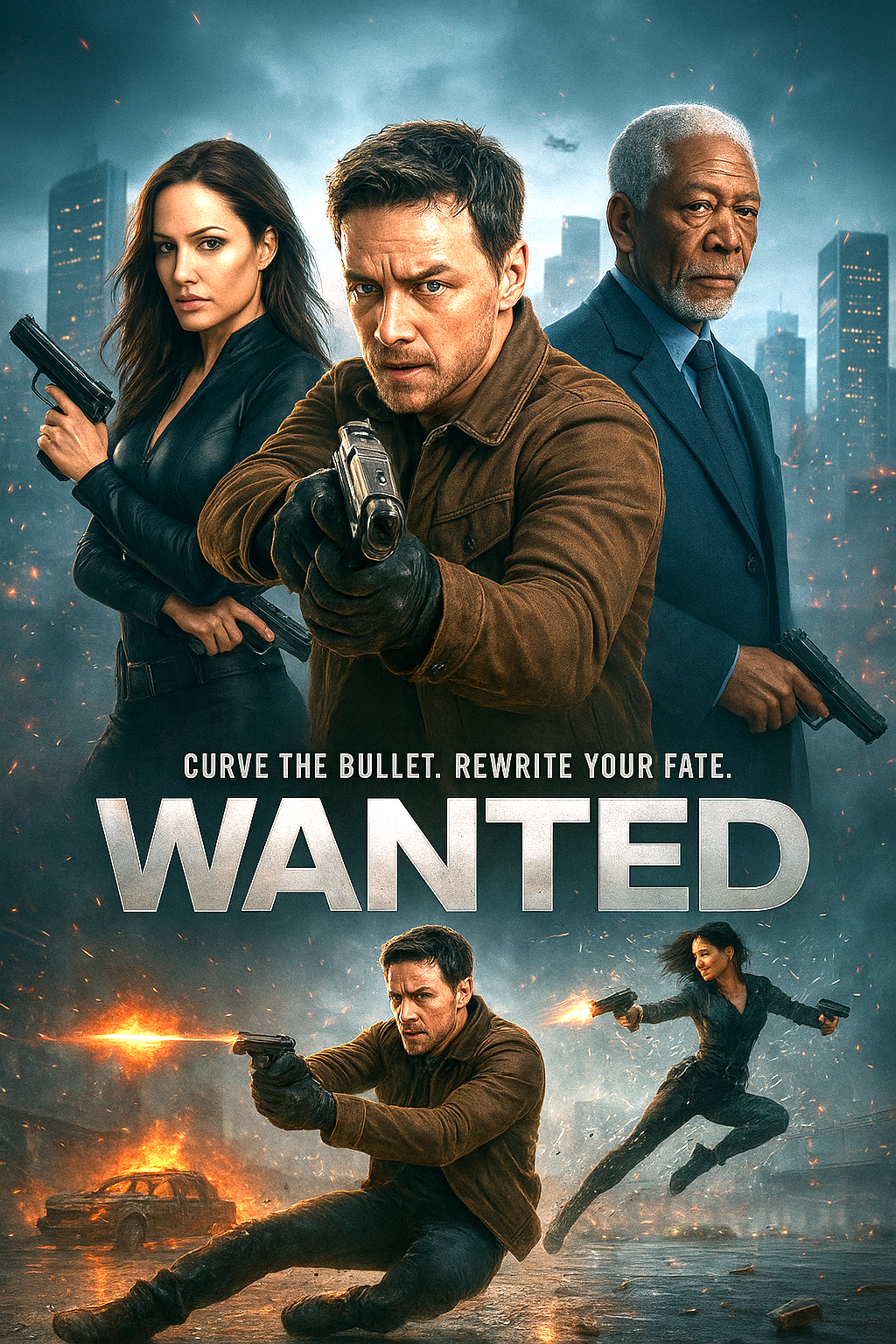 Wanted follows Wesley Gibson (James McAvoy), a disillusioned office worker whose mundane life is turned upside down when he learns he’s the son of a legendary assassin. Recruited by a secret organization known as β€œThe Fraternity,” Wesley trains under the deadly mentor Fox (Angelina Jolie) to unlock his latent abilities β€” including superhuman reflexes and the ability to curve bullets. But as Wesley becomes a master killer, he discovers the dark truth about the organization’s motives and his own destiny.