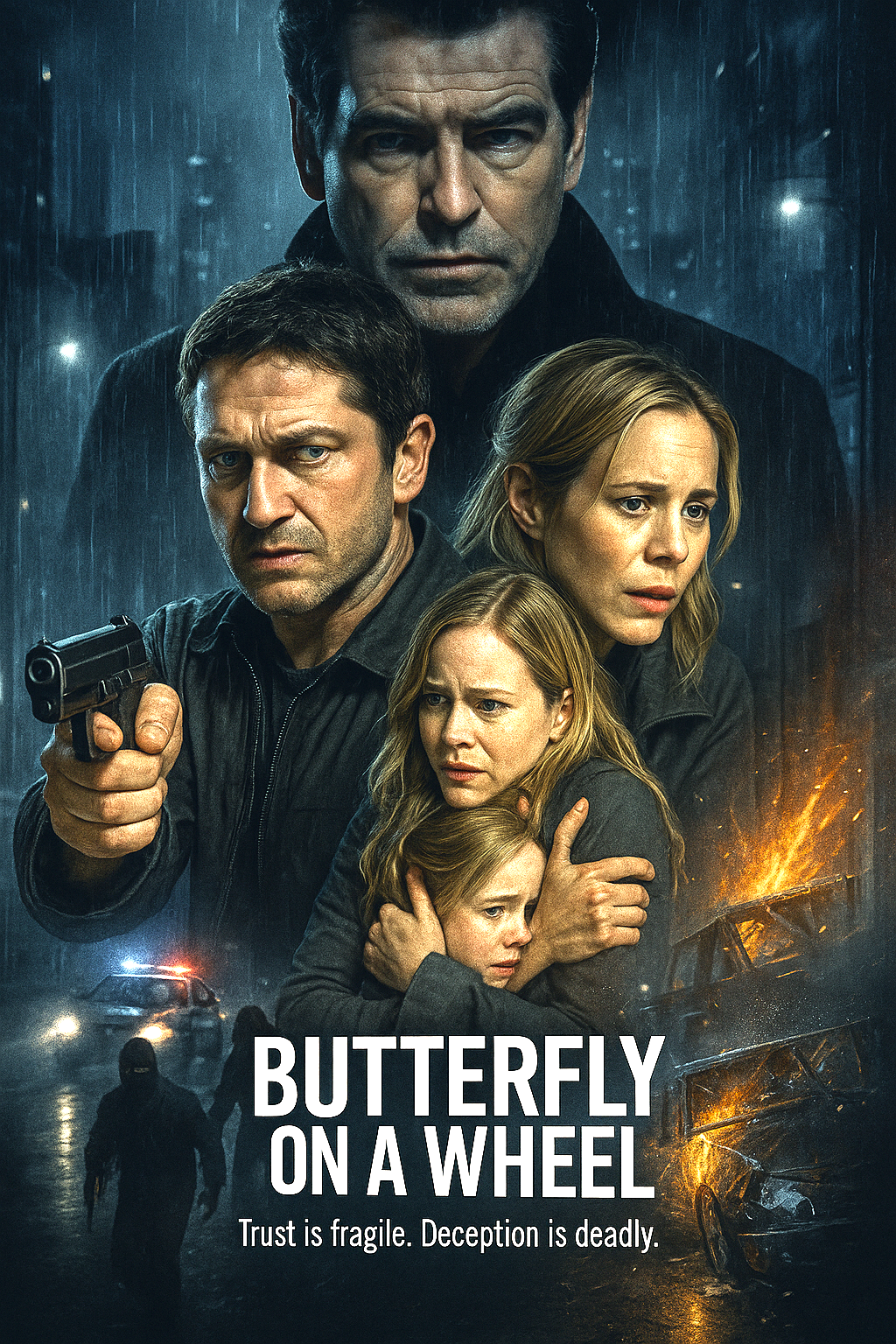 Butterfly on a Wheel is a psychological thriller that follows Neil Randall (Gerard Butler) and his wife Abby (Maria Bello), a seemingly happy couple whose lives are turned upside down when their daughter is kidnapped. A mysterious stranger, Tom Ryan (Pierce Brosnan), informs them that to see their daughter alive, they must comply with his increasingly manipulative and dangerous demands.
