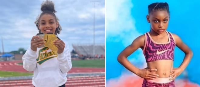 At just seven years old, Dakota White from Dallas didn’t just run β€” she made history. Representing her team, Xpress Track Club, Dakota raced with a heart full of determination, legs moving faster than most could imagine, and a spirit that refused to be ordinary. Together with her teammates, she shattered the girls’ eight-and-under 100m relay record at the AAU Junior Olympics, crossing the finish line in an astonishing 59.08 seconds. πŸƒπŸΎβ€β™€οΈπŸ’¨πŸ’« In that single, breathtaking moment, Dakota became the fastest kid in the nation β€” a title that reflects not just speed, but the power of focus, perseverance, and unyielding passion.What makes Dakota’s story truly remarkable is not only her record-breaking time, but the courage and dedication behind it. At an age when most children are learning basic coordination and play, Dakota is mastering precision, teamwork, and the discipline of a true athlete. Each stride she takes is a testament to countless hours of practice, early mornings, and a mindset that refuses to accept limits. πŸŒŸπŸ’›