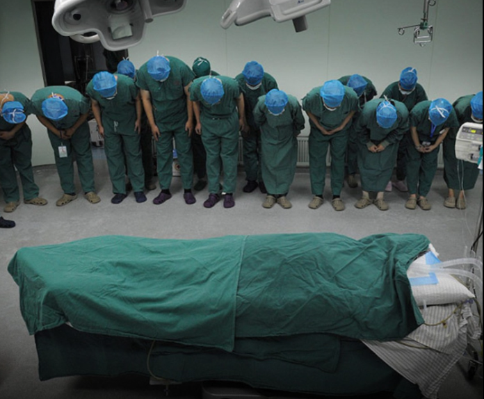 The hallway fell into a reverent silence as her hospital bed began its slow, heartbreaking journey forward. Doctors, nurses, and staff lined both sides, heads bowed, hands clasped, eyes filled with tears. It was an Honor Walk โ a sacred tribute reserved for those whose final act is saving others. ๐๏ธโจ