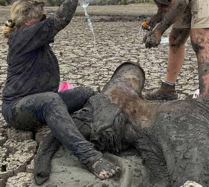 Minutes turned to hours. With one final coordinated heave, the first calf broke free, sliding onto solid ground with a weak cry. Her little body shook, coated in mud, but her eyes were bright β€” she was alive. πŸ’›But the second calf… she was fading. Her breaths shallow, her movements slowing. The rangers refused to give up. One man knelt in the mud, holding her trunk, whispering, β€œStay with us… please.” With a last, desperate pull from the entire team, her tiny form slipped free at last. For a moment, no one breathed. Then she lifted her trunk β€” a soft, fragile note β€” and the whole team broke into relieved smiles. 🌟